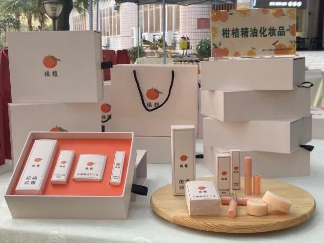 由于紅桔精油的護(hù)膚特性,其常被用于制作化妝品的原料。重慶三峽職業(yè)學(xué)院組建紅桔深加工團(tuán)隊(duì),已成功開(kāi)發(fā)出精油、潤(rùn)唇膏、香皂等古紅桔精油化妝品。